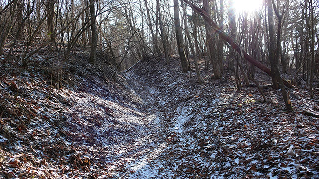 鉄砲木の頭(明神山)からの眺めは抜群で、山中湖と富士山を眺めるには格好のビューポイントだった.鉄砲木の頭から切通峠までの稜線は緩やかなアップダウンが続き、とても歩き易い初心者向けのハイキングコースだった.切通峠は昔の峠道といった風情の地道の十字路でとても味わいのある場所だった.