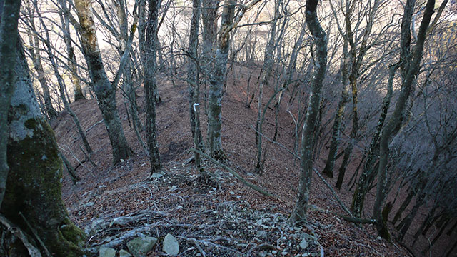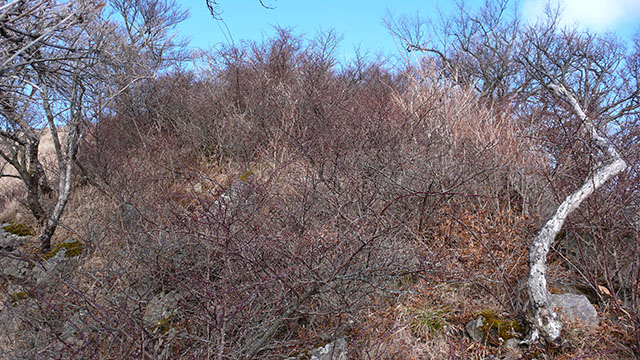 頂上付近の茨のジャングルを左に巻く