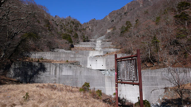 とても仰々しい西沢の堰堤群
