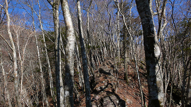 尾根筋を外さないように登って行く