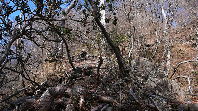 ガレた急斜面で相当険しい
