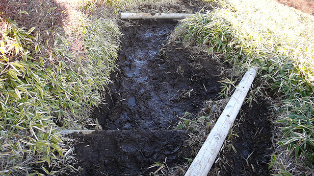 溶けた雪と霜柱で道は泥沼状態