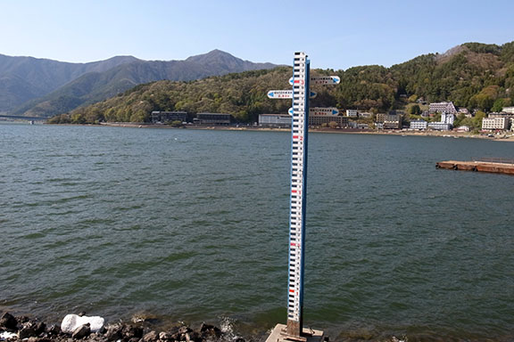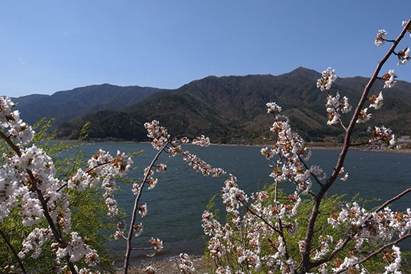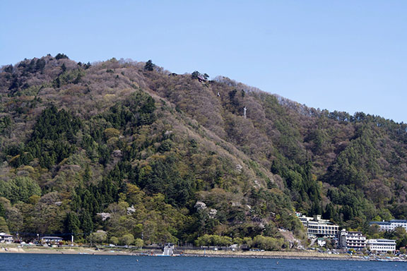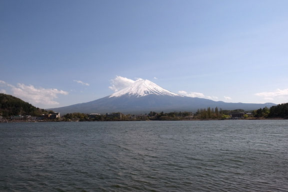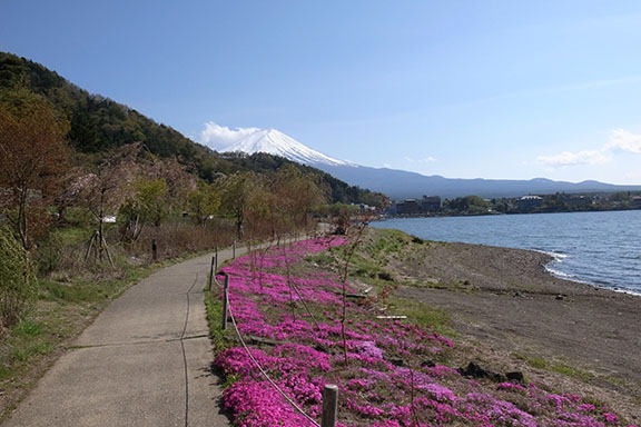 帰りのバスの便がなかったので、のんびり湖畔を散策しながら歩いて河口湖駅に向かうことにした.この日は風がとても強く湖面が波立って名物の逆さ富士を見ることができなかった.