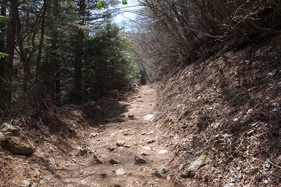 三つ峠登山口から頂上まで全編こんな感じのつまらない林道のような道が続く