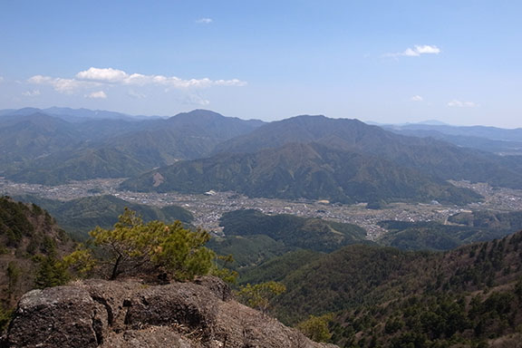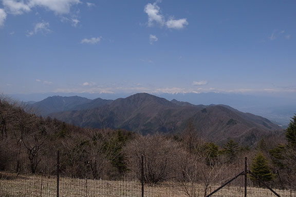杓子山、御正体山そして遠くに丹沢の主峰の山々が見えている