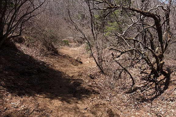 今回登りに使ったコースは三つ峠への最短コースでバス停から頂上まで一時間も掛からない初心者向けのコースだったが、全編車が通れるような林道のようなコースで全くもって何の楽しみもない退屈で単調な道だった.こんな道を登山道と呼ぶのは止めて欲しい.どうみてもただの無線中継所や山小屋のための物資搬入用の道路だ.