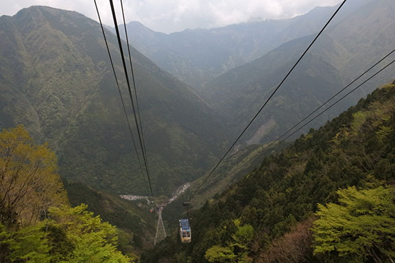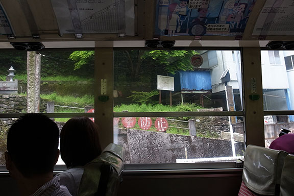 路面電車に乗りJR松山駅から特急列車で伊予西条へ向かった.西条駅前 7:43分発の西之川行きのバスには間に合わないので、次の10:23分発のバスまで駅前の観光案内施設で時間を潰す.この日は中学生くらいの20人程のグループが乗り込んできたので珍しくバスはほぼ満席になった.このグループはロープウェイには乗らず河口(こうぐち)から昔からの登山道である今宮口登山道を登り、今夜は成就社の宿に泊まるようだ.