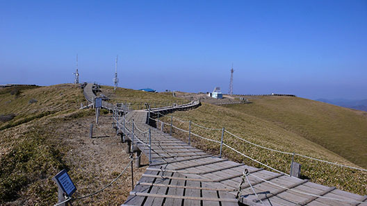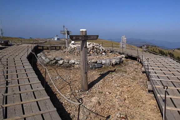 木道で守られた平坦な剣山の頂上