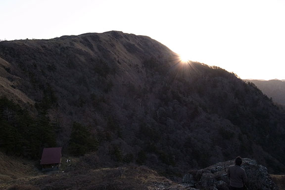 西熊山の後から朝日が昇る