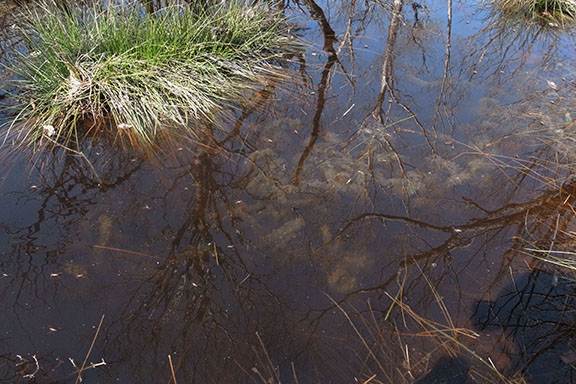 途中の水たまりにはヒキガエルの卵が産み付けられていた