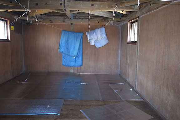 丸石避難小屋の内部は薄暗くあまり居心地は良くなさそう