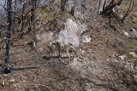 鹿進入防止網に生後間もない仔鹿が絡まって骨と皮だけになっていた