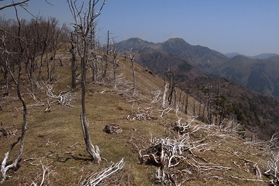 この辺りの稜線では樹木の白骨化が広がっていた