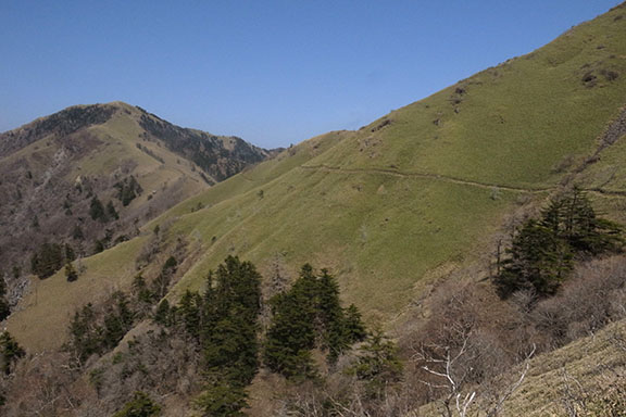 三嶺にかけて緩やかで心地良い稜線歩きが続く