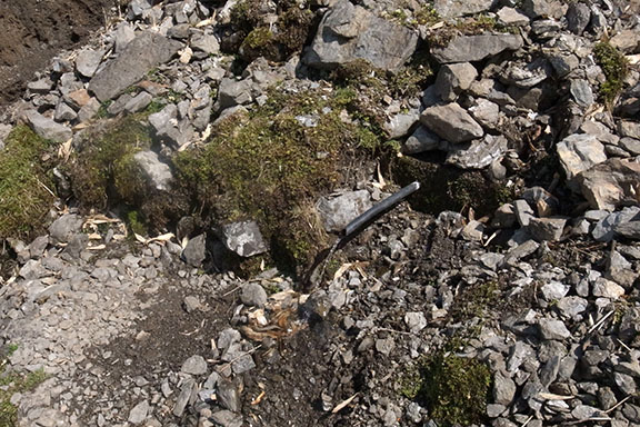 山と高原地図では白髪山避難小屋の高知県側に水場マークが記されているので、高知県側の斜面を探してみるがそれらしき水場は見当たらないどころか、とても水が湧き出しそうな雰囲気の斜面ではなかった.一旦小屋まで戻り今度は反対側の名頃方面の斜面を探索に行くが、苔の生えたそれらしき岩場があるが水が湧き出している様子もないし、水の音も聞こえない.斜面を思い切り下ると水場に出くわしそうな雰囲気はあるが、有るか無いか分からない水場を探し求めて急斜面を下りる気にはなれなかった.GPS紛失ショックも有りかなり気力が衰えていた.