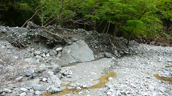 いつものように新松田からバスで寄へ向かうが、7:55AM発のバスはハイキング客で満席に近い状態だった.寄沢に足を踏み入れると河原の様子が以前と大部変わっていた.大雨による鉄砲水があったようで、河原にはかなりの量の土石が堆積していた.名物の流木の橋もすっかり流されて跡形も無かった.大量の土石流出により歩きにくくなった部分もあったが、登山道そのものはそれなりに手入れされているようなので、前と同じように歩く事ができる.