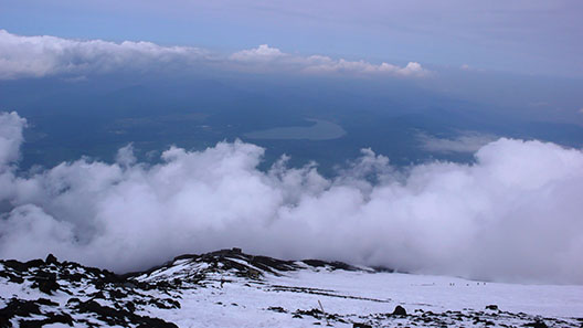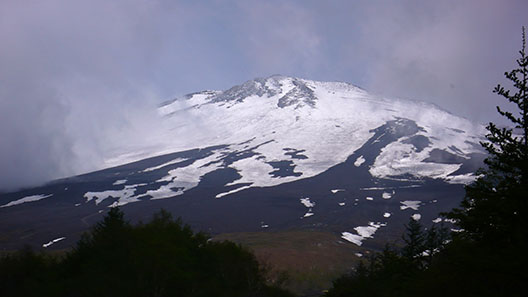 今日の富士山は時折ガスが途切れて頂上付近が望めるような状態