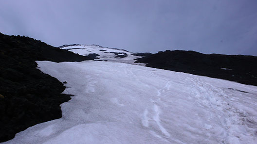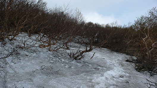 登山道を外れて直登を試みるが腐れ雪で歩きにくい