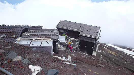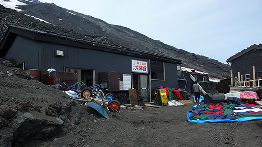大陽館の前を通りかかるとアルバイトのお兄さん達が慌ただしく営業の準備をしていた.お兄さんに営業の開始時期を尋ねるともう営業を始めているとのことだった.大陽館は今頃の時期から10月中頃まで営業を続けているので、シーズン中の混雑を避けて富士登山を行うにはとても重宝する山小屋だろう.