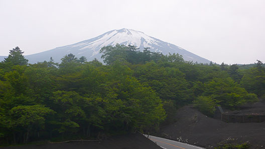 いつものように御殿場駅前からハイキングバスに乗り須走口5合目に着いた.バスの乗客は登山客が数名と東南アジア系の観光客と米軍関係者と思われる親子連れが乗っていたくらいだった.この所の暖かさで富士山も急激に雪解けが進み登山道の大部分は露出するようになってきたが、まだ一般の人が簡単に登れるような状況ではない.丁度5〜6合目辺りが新緑の季節を迎えており、緑豊かな須走口登山道は歩いていてとても心地良い.