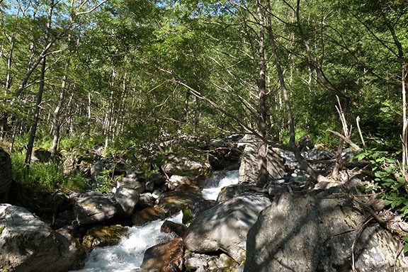 広河原までの下りのコースは草スベリと呼ばれる高山植物が咲き乱れる急な斜面を下りて白根御池小屋に立ち寄る林間コースを選んだ.白根御池小屋でソフトクリームを食べたりして大分道草をしてしまったので時間が掛かってしまったが、肩の小屋から広河原まで2時間30分位を見込んで置けば良いだろう.白根御池小屋は想像以上に立派な小屋で美味しい水も飲み放題で水洗トイレまで完備していた.ここでのテント泊はさぞかし快適だろう.