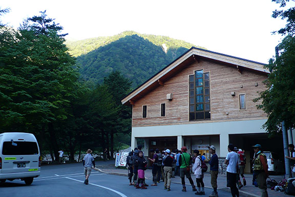 バスが広河原に着くと既に乗り合いタクシーなどで広河原入りしていた人達でごった返していた.環境省の野呂川広河原インフォメーションセンターの案内カウンター前には北沢峠行きのバスチケットを購入するための行列ができていた.人が居なくなるまでインフォメーションセンター2階の休憩ホールで暫く時間を潰してから登山口へ向かう事にした.このインフォメーションセンターには公衆トイレや給水場、南アルプス周辺の自然環境や動植物などを紹介した展示物などがあるのでバス待ちの時間つぶしがてら立ち寄ってみるのが良いだろう.