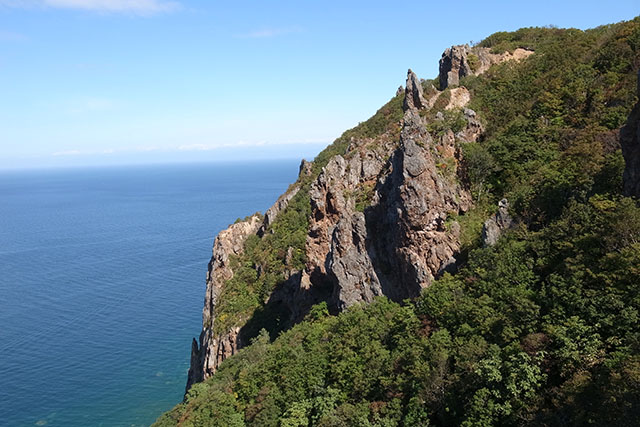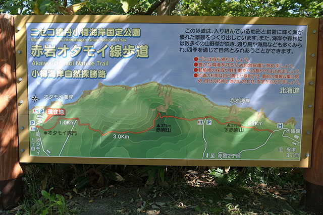 北海道遠征の最終日となった9月の三連休最終日、飛行機の出発時間までは少し余裕があったので、小樽海岸自然探勝路をオタモイ側から祝津方面へ散歩することにした.この日は連休中の秋晴れの絶好のコンディションであったにも関わらず、ほんの数人しかこの自然探勝路を歩いて居なかったのは何とも勿体ない.コースも整備されておりスニーカーで気楽に歩く事ができるので、小樽に行く機会があったら是非一度この小樽海岸自然探勝路を歩いて見ることをお薦めする.街中のアホな観光スポットなんかで時間を潰すより思い出に残る上質な体験ができるだろう.今回はオタモイから祝津まで歩いたが、オタモイ側のコースは殆どが樹林帯の中の道で視界が開けていないので殆ど見所が無い.海岸線の眺望は祝津側に集中しているので、祝津側から登って途中で折り返すのが良いだろう. ・「自然散策マップ」(小樽市)