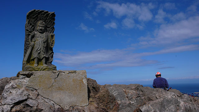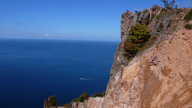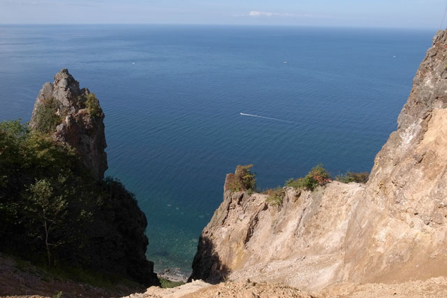 小樽の赤岩海岸の絶壁は風光明媚な海岸線として知られているが、ロッククライマーにとっては格好の練習場になっている.この赤岩海岸の絶壁の上を歩く遊歩道が設けられており、眼下に綺麗なコバルトブルーの海と奇岩が続く海岸線を見ながら気軽に散歩ができる.