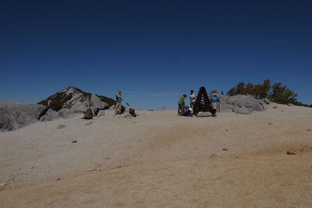 薬師岳山頂は広い砂地で覆われている