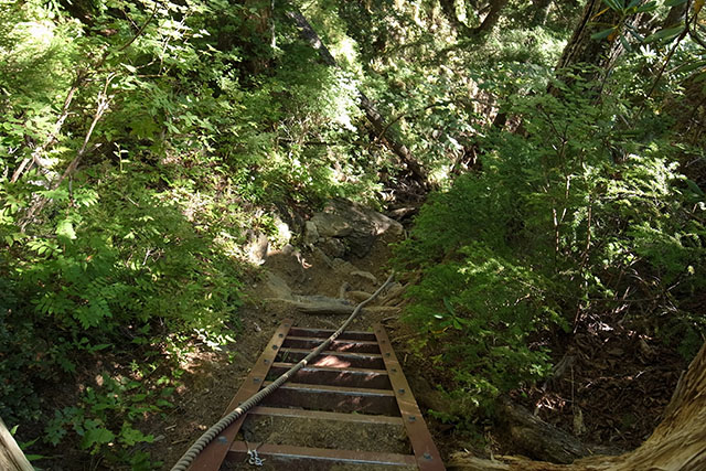 急斜面を梯子で下りて行く