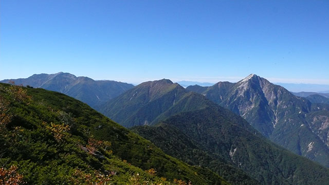 高嶺の頂上から鳳凰三山を望む