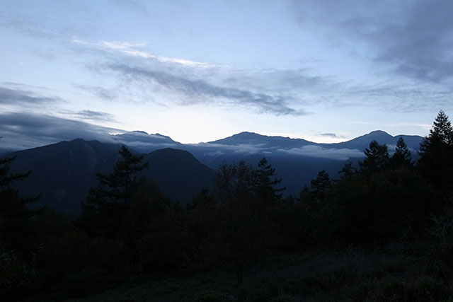 この日のテント場には私の他には埼玉から車できたソロの男性1人がテントを張っていただけで、とても静かな一夜を過ごすことができた.小屋のバイオトイレのモータ音?が少々耳障りだったが、登山口からほんのちょっとの労力で登って来ることができるので、星空撮影などで思い機材を持ち込む場合には好都合だ.明け方近くにふくろうがテント場の直ぐ側の木に止まって鳴いていたのが印象的だった..明朝雲一つない絶好のコンディションになり、朝日を浴びて輝く白根三山を見ながらのんびりと朝食を食べるのは最高の贅沢だ.夜叉神峠のテント場を利用する人は少ないようなので、テントを張ってのんびり過ごしたい人にはお勧めのテント場だ.但し、水場がちょっと遠いので登山口で予め水を汲んでおいた方が良いかもしれない.