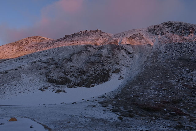 最終日の行動予定は特に考えて居なかったが、天気が良さそうなのでお鉢平をぐるっと廻ってから層雲峡方面へ下山することにした.とりあえず緑岳から小泉岳、赤岳と寄り道してから、まだ歩いたことのない北海岳から間宮岳分岐へ抜けてみることにした.