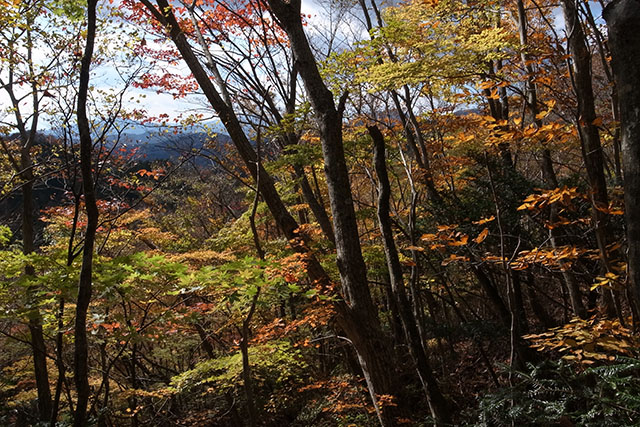 大滝橋から畦ヶ丸までの間ですれ違ったのは4〜5組10数人程度しか居なかったので、畦ヶ丸への登山ルートとしては相変わらずマイナーなのだろう.畦ヶ丸は混んでいたので一休みしただけで直ぐに甲相国境尾根へ向かった.こちらのルートは更に人が少なく、静かな山歩きを楽しむ事ができた.途中3〜4名のパーティーを二組ほど抜いたが、どうやらこの人達も菰釣避難小屋泊まりのようだ.マイナーコースなので菰釣避難小屋は空いて居るだろうと勝手な予想をしていたが、紅葉シーズン真ただ中の好天の土曜日では、菰釣避難小屋といえども大盛況のようだ.
