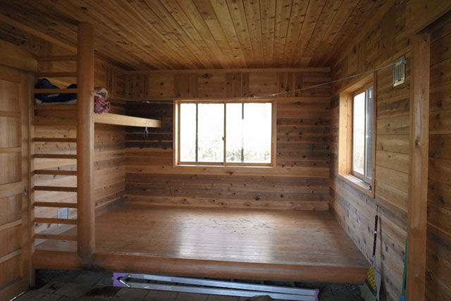 予想通りの両足の靴擦れに悩まされながらも、何とか4時前に小屋入りすることができたが、既に4人組の先行パーティーが小屋に入っていた.菰釣避難小屋の収容定員は10名と記載されているが、床部分は六畳程度しかなく5〜6人が横になるのが精一杯だろう.この狭い小屋にあと7〜8名も収容するのはどう考えても無理だが、この後どうなるのかと心配になった.