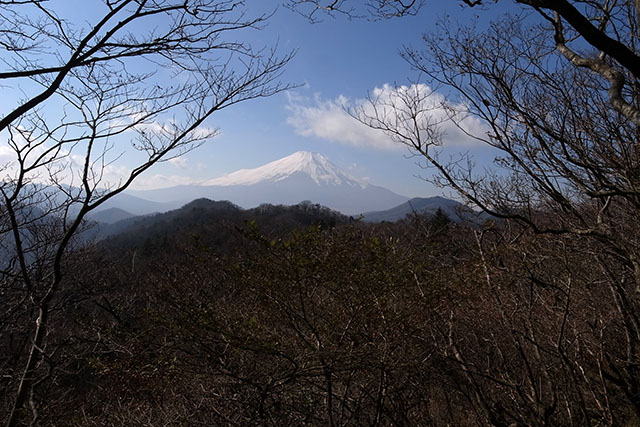 まだ今日の最終目的地は決めていないが一先ず菰釣山へ向かう.菰釣山の頂上では先程の男性が一足先に来ていて休憩していた.期待していた富士山の眺望は雲が多くてイマイチだったが、甲相国境尾根のコース中では一番視界が開けている場所だろう.先程の男性と頂上のテーブルを囲んで暫く山談義をしていたら、そのままランチブレーク(朝飯かな)になり暫く一緒に食事をしながら丹沢の山々や穴場スポットの話など情報を交換し合った.