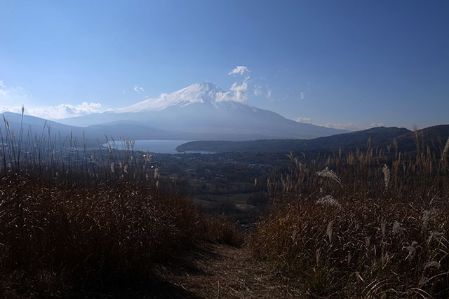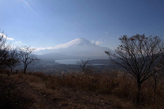 あまりにのんびりしていたので、富士山の絶好のビュースポットの高指山に着いた時には富士山が逆光気味になってしまったが、山中湖越しの富士山は絶景だ.