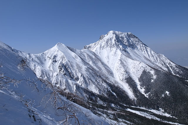 中山展望台から阿弥陀岳(右)と中岳(左)