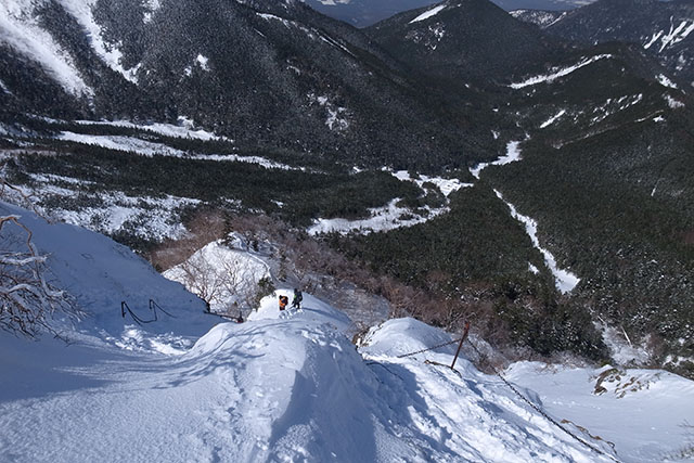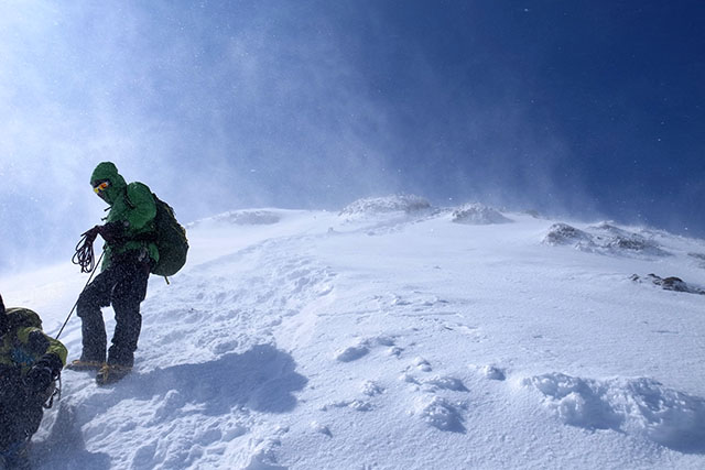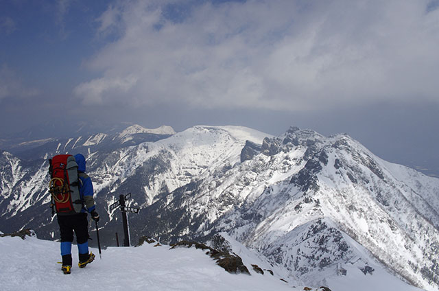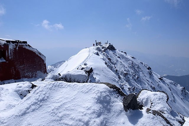 行者小屋から地蔵尾根経由で赤岳の主稜線へ出て、赤岳展望荘を経由して赤岳頂上へ向かったが、稜線は想像以上に風が吹き荒れ、晴れてはいたもののブリザードを伴う暴風で結構難儀した.赤岳からの下山コースは文三郎尾根から行者小屋へ戻り、南沢経由で美濃戸口へ下りた.