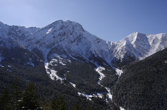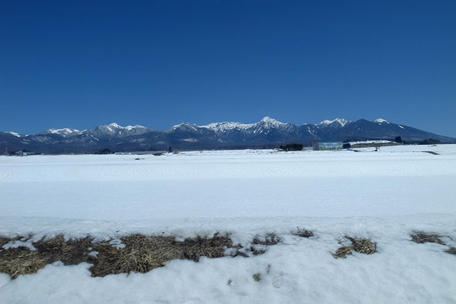 美濃戸口へ向かうバスの中から八ヶ岳連峰を眺める