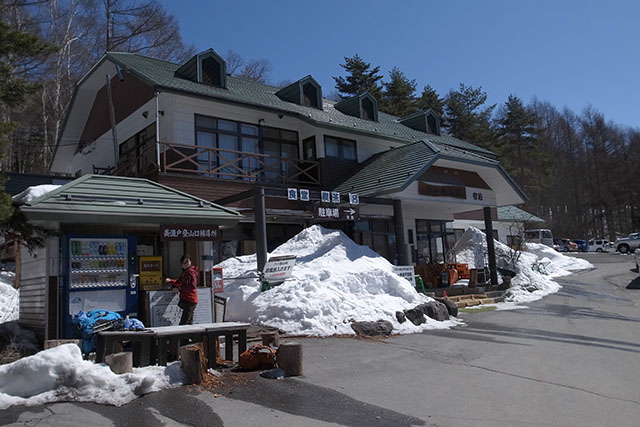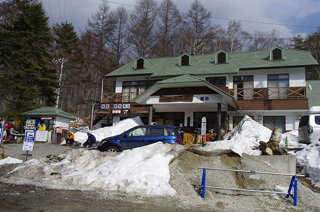 JR茅野駅から美濃戸口行きのバスで美濃戸口へ向かうが、遅い時間帯のせいか乗客は私の他には1名だけだった.美濃戸までは車が入ることのできる林道歩きが続くが大部分は車輪の轍の部分が融雪の水たまりになっていた.林道や所々に設けられている近道の山道を野鳥を探しながらのんびり歩く事2〜3時間くらいで赤岳鉱泉に着いた.赤岳鉱泉名物の人口の氷壁ではアイスクライミング初心者が練習していた.