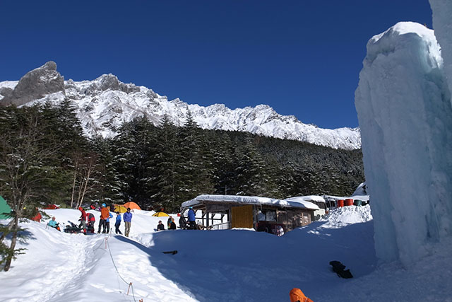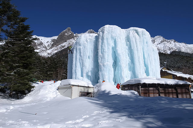 赤岳鉱泉名物人工氷壁(アイスキャンディー)