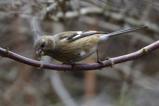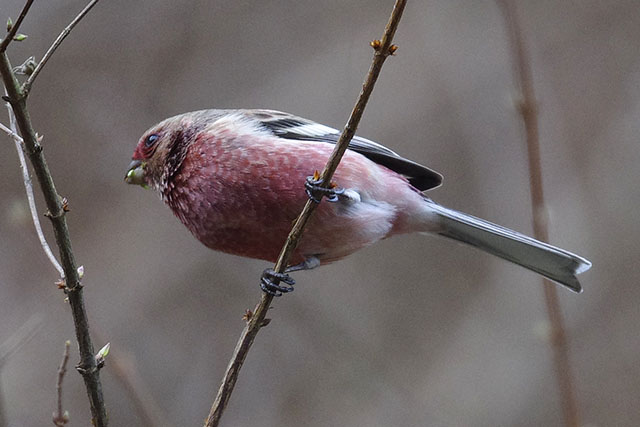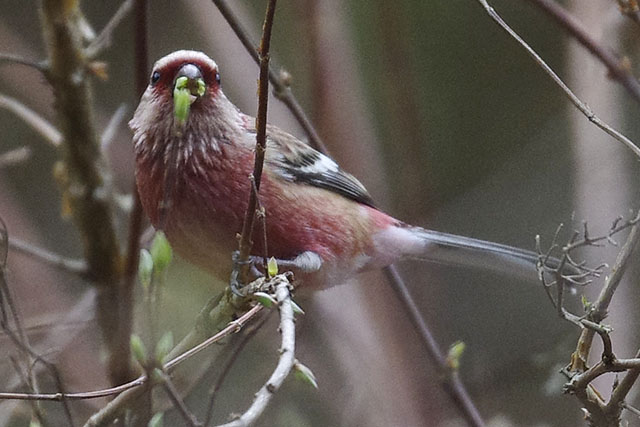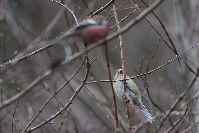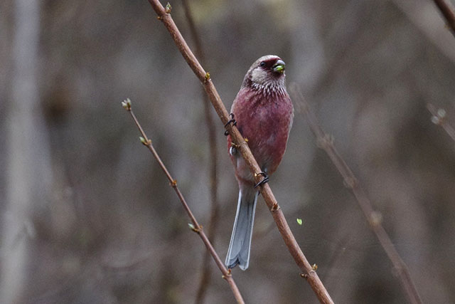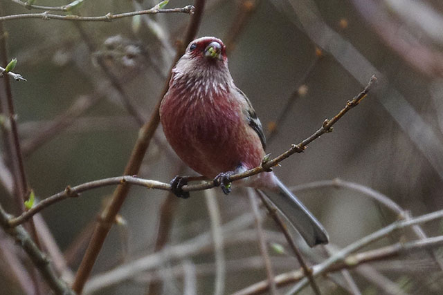 秦野駅まで引き返すのも面白くないので、そのまま関東ふれあいの道にもなっている弘法山から吾妻山を経由して鶴巻温泉へ向かうコースで下山し、午後に宮ヶ瀬の早戸川林道へ寄り道してから帰ることにした.ここの所急に気温が上昇したのでもうベニマシコは北へ帰ってしまって見られないだろうと思っていたら、意外にもまだベニマシコが宮ヶ瀬近辺に留まっていた.
