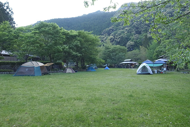 このキャンプ場は大塔川の河川敷に設けられたオートキャンプ用の有料キャンプ場(一泊800円)だが、テント設営地は芝生が植えられていて設備も立派なとても利用しやすいキャンプ場だった.ただ一つ残念だった事は、夜中に車で乗り付けて周囲の迷惑も省みずに家族用の大きなテントを設営する身勝手な家族連れが二組ほど居たことだろうか.