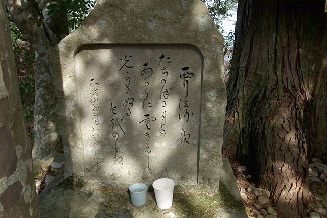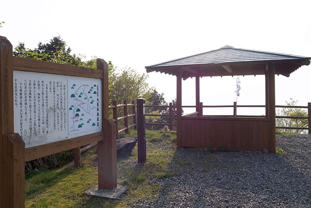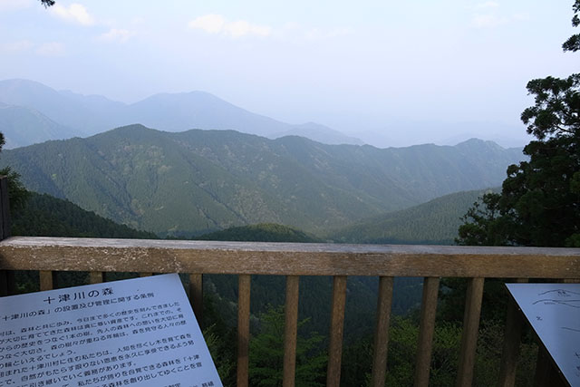 本来なら玉置山の頂上からかつえ坂を下って行くのが奥崖道のコースなのだが、間違えて勧業山記念碑方向へ下りてしまった.途中で引き返すのも面倒なのでそのまま巻き道を使って展望台まで行くことにした.展望台の手前に大きな世界遺産の記念碑が置かれていて、天気が良ければそこから熊野灘方面が見渡せるというのだが、空気が霞んでいて熊野灘は見えなかった.