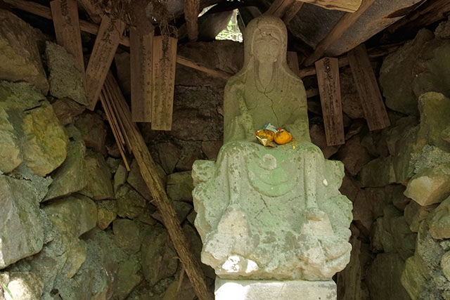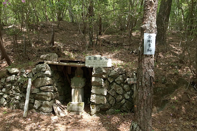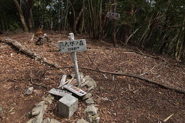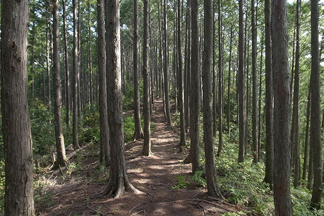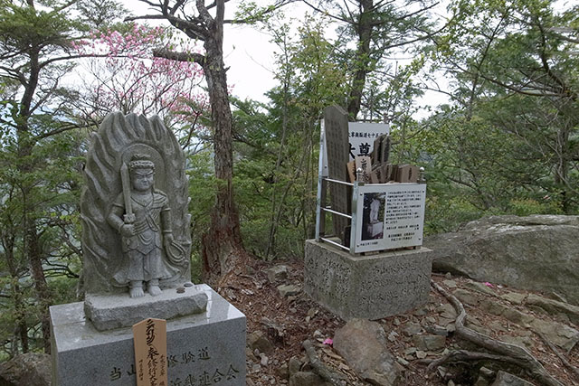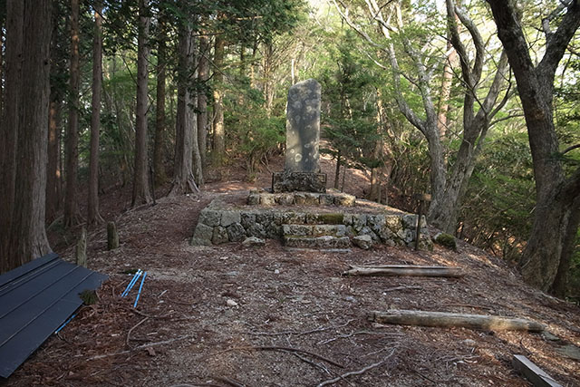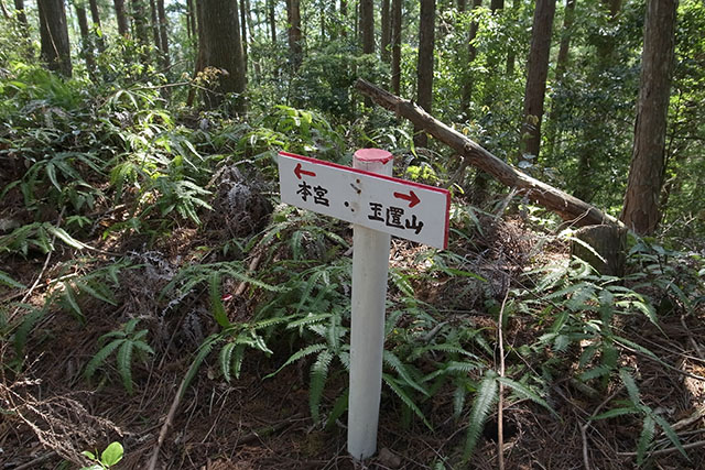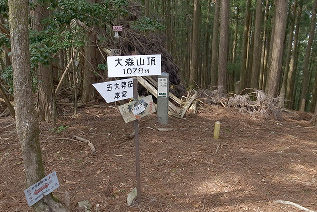 公園の先にある本宮方面を見渡せる見通しの良い場所でのんびり休憩を取った.コースの大部分は杉の人工植林地帯で、殆ど見通しも効かないので歩いていても楽しくはないが、途中の靡と呼ばれる場所では修行者達が残した木札が沢山残されており、ここが修行の道である事が実感できる.