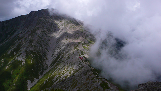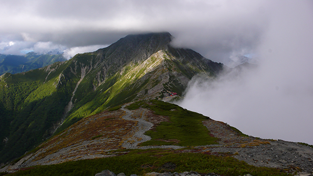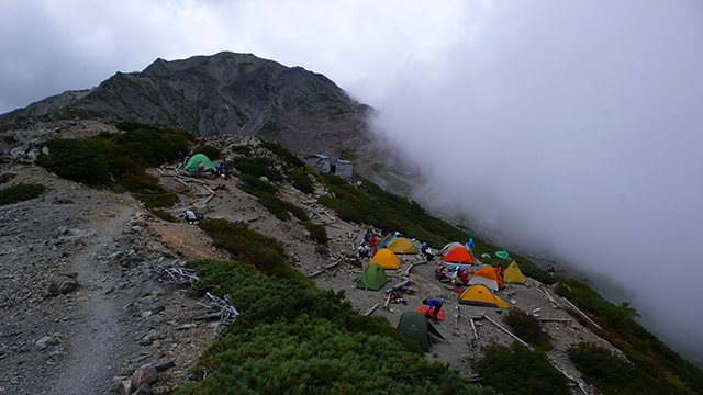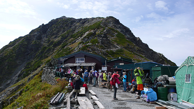 とりあえず初日は大門沢小屋で、二日目は北岳山荘でテントを張ることにした.初日の大門沢小屋ではまだ北岳方面から下りて来る人達がそれ程多くなかったなので、テントスペースはぎりぎり何とか間に合ったようだ.二日目にすれ違った人達の人数から見て、翌日の大門沢小屋は大変な事になっていただろう.とても大門沢小屋のキャパシティーで受け入れられる様な人数では無さそうだった.