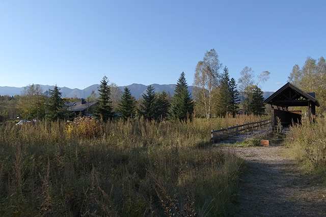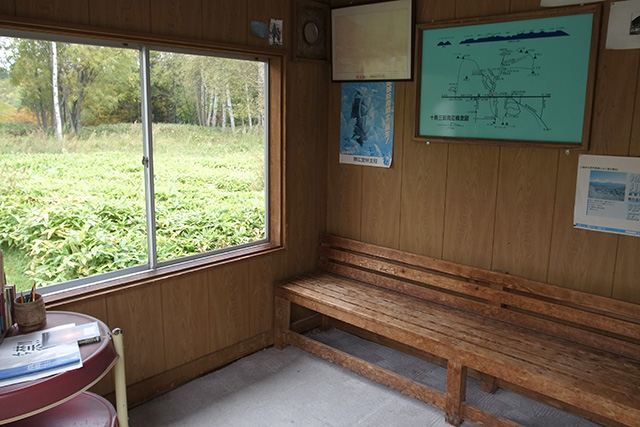 テントをたたみ、十勝三股まで林道をトコトコ歩いて行くが、往きの雨の中と違いとても清々しく心地良い林道歩きだった.十勝三股で帰りのバスを待つことにするが、まだ時間があるのでバス停の斜め向かいにある三股山荘というログハウスの喫茶店で時間を潰すことにした.三股山荘の裏手にはかつての国鉄士幌線の駅舎のプラットホームが残されていた.今は十勝三股には二軒しか民家が残っておらず、士幌線が走っていた当時を想像する事は難しい.