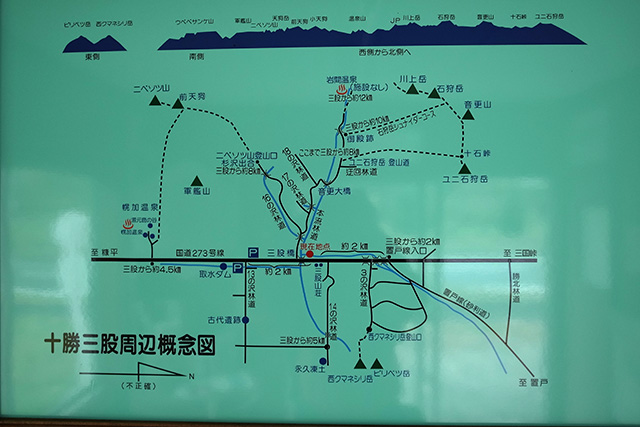 国道を逸れ石狩岳やニペソツへ通じる林道に入る