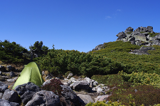 前天狗の登山口側にはテント一張りが辛うじて張れる絶好のスペースがあった